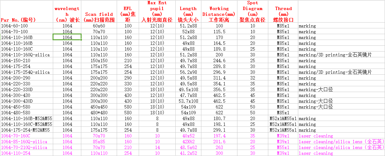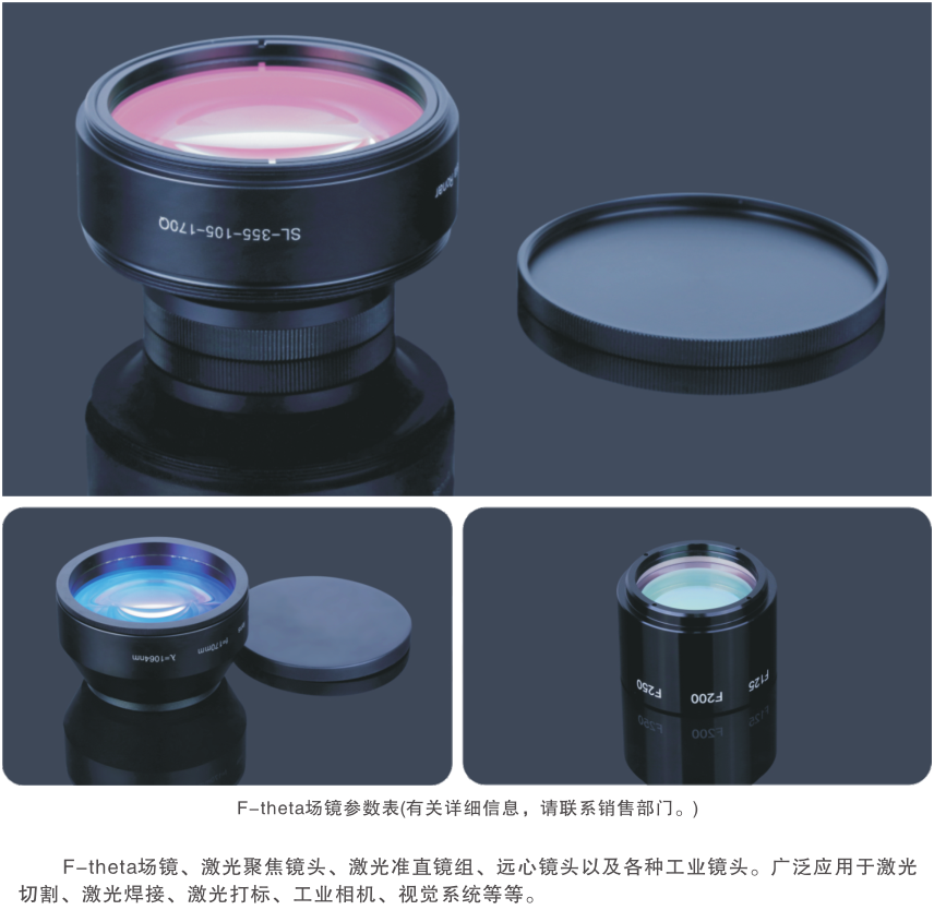光纤激光场镜功能上属于聚焦镜,其与普通聚焦镜差别是其具有F*Θ的特性,加工位置可以根据F*Θ进行计算,同时在大视场范围内保持均匀性。