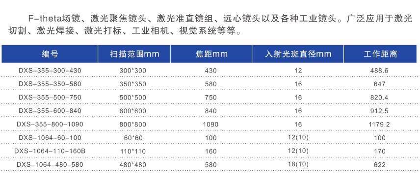 特点:设计加工精度高,幅面内均匀性好,光斑圆整度高