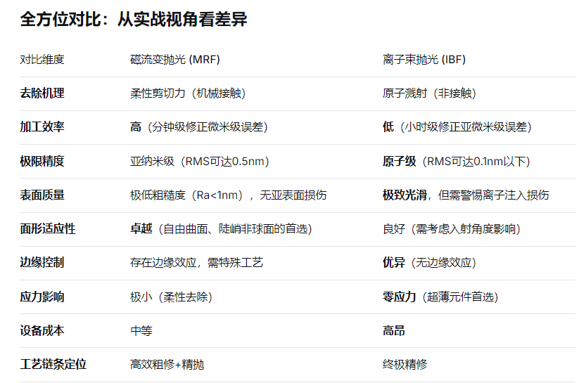 磁流变抛光和离子束抛光,如同倚天剑与屠龙刀——前者锋利高效,能应对千变万化的复杂面形;后者内功深厚,能在原子尺度上追求极致。